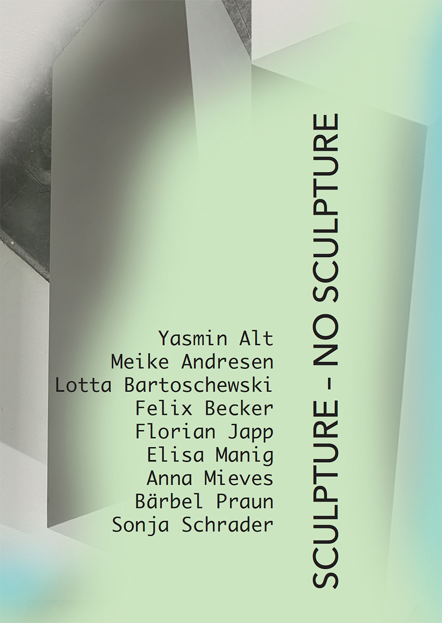 group show at Spoiler Aktionsraum Moabit, Berlin, curated by Skulpturverein with Andrea Acosta, Anina Brisolla, April Gertler, Bärbel Praun, Christof Zwiener, Dennis Feddersen, Fee Kleiß, Florian Japp, Jay Gard, Jens Nippert, Nándor Angstenberger, Stefanie Bühler, Yasmin Alt.